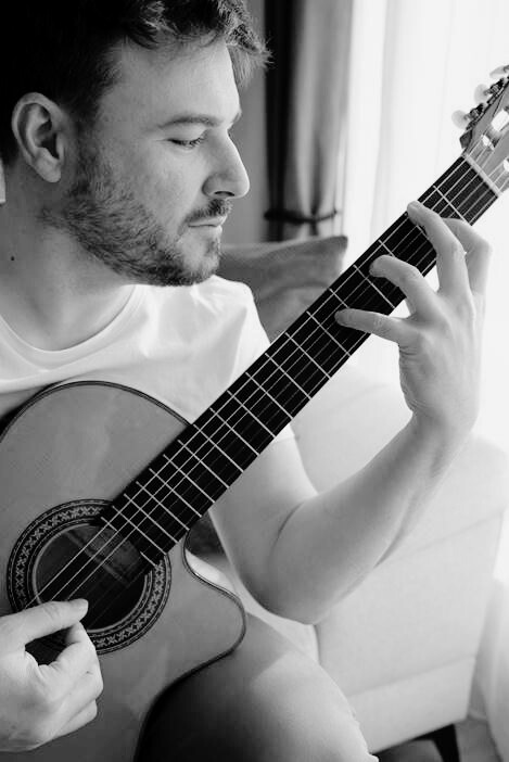 Nacido en Barcelona en 1980, es músico y compositor con una sólida formación en guitarra clásica, armonía y composición. Estudió guitarra clásica en el Conservatorio Municipal de Música de Barcelona con Joan Furió y Marcos Villanueva, y amplió sus conocimientos en armonía y composición con Judit Balsach, Albert Llanas y Xavier Boliart. Paralelamente, completó su formación musical con Riqui Sabatés en el Taller de Músics de Barcelona.