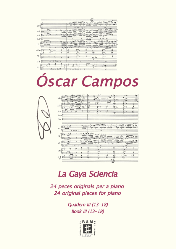 Les 24 peces originals per a piano que conformen el quatre quaderns –flanquejades per una Fanfàrria d’entrada i un Comiat– rendeixen tribut a la Gaya Sciencia a través de diferents propostes musicals actualitzades. Entre els títols distingim danses, personatges, cançons, formes musicals i d’altres amb un significat més poètic i evocatiu.